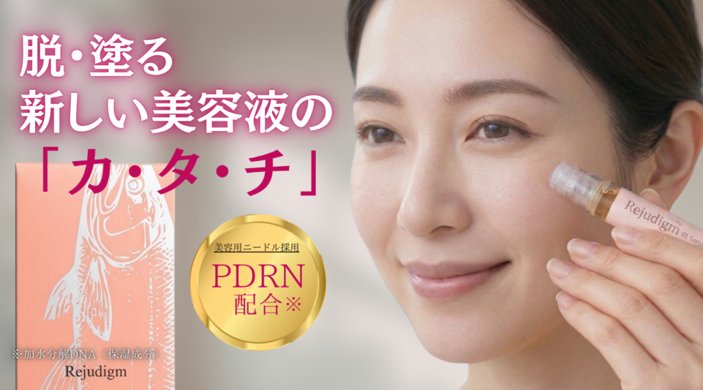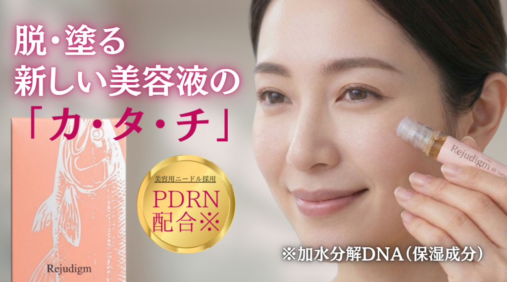 美容感度の高い方々の間で、今まさに話題沸騰中の成分**PDRN(サーモン由来)**。リジュダイム 01セラムは、サーモン由来の希少なPDRN(加水分解DNA:保湿成分)を贅沢に配合しました。年齢肌の乾燥を防ぎ、 角質層へ浸透し、ハリとツヤを与える。 自宅にいながら、サロン帰りのような満足感を。